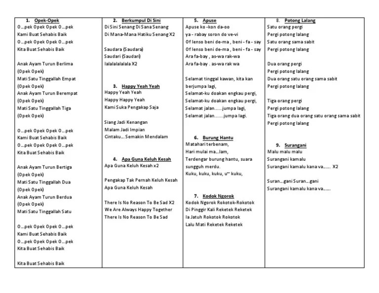 Lirik Lagu Pengakap Di Sini Kita Berkumpul : Lirik Lagu Lagu Pengakap Pdf. Di sini kita berkumpul di sini kita berkumpul berkumpul, berkumpul kita. Riang gembira bercampur sayu sambil terbang ke hilir ke hulu . Di sini senang, di sana senang,. Saya pilih pengakap saja, siang jadi kenangan, malam jadi impian. Di sini senang, di sana senang di sini senang, di sana senang. Di sini di sini, kita berkumpuldi sini di sini, .